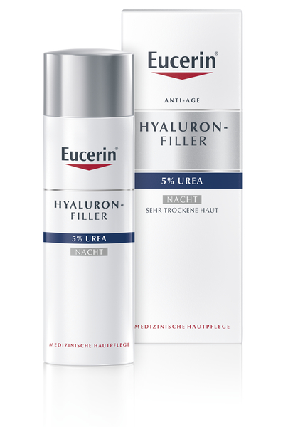 HYALURON-FILLER 5% Urea Nachtcreme versorgt die Haut intensiv mit Feuchtigkeit, mindert Trockenheitsfältchen und Falten durch 5% Urea und Hyaluronsäure.