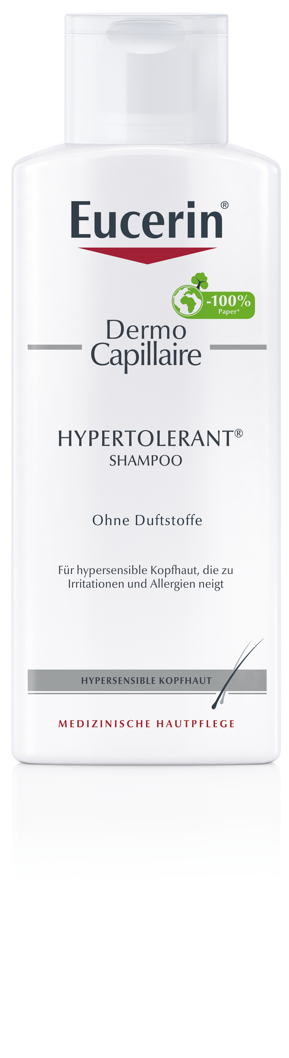 Eucerin DermoCapillaire Hypertolerant Shampoo wurde speziell für Personen mit einer hypersensiblen Kopfhaut entwickelt. Die extra milde Formel reinigt sanft und beruhigt Irritationen, gleichzeitig schützt sie die Kopfhaut vor dem Austrocknen – sogar, wenn Ihre Kopfhaut hypersensibel reagiert. Schon von der ersten Anwendung an wird der Juckreiz gemindert und die Kopfhaut beruhigt.